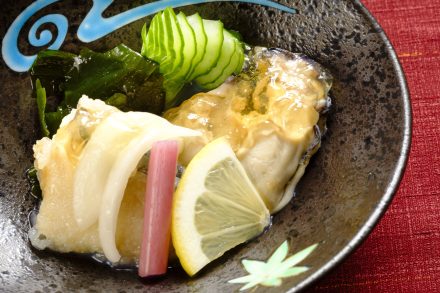 酢の物 牡蠣と鯵の南蛮漬け レモン 蛇腹胡瓜 若布