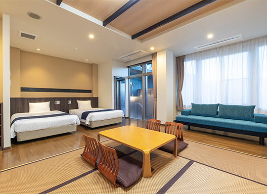ファミリーでのご利⽤に最適!ゆったりとした空間の和洋折衷のお部屋です。